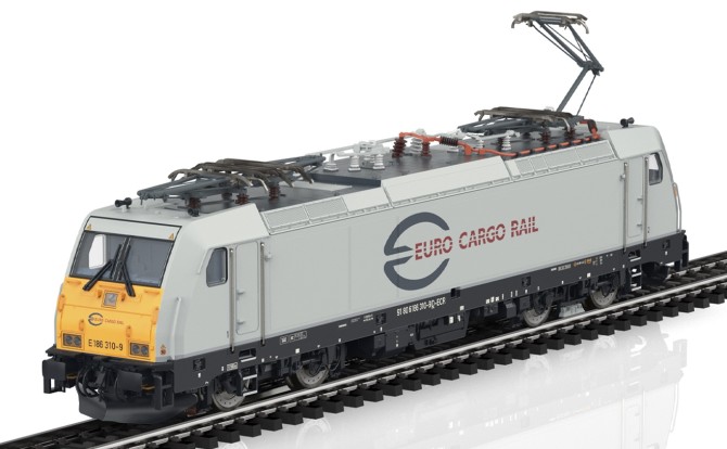 Nachdem die 186er bisher im Märklin Programm nur als einfacheres Start-Up vorhanden war, kommt nun ein zeitgemäßes und hochdetailliertes Modell ins Programm. Sowohl die Ausstattung unter der Lok, als auch auf dem Dach der Lok entspricht exakt dem jeweiligen Vorbild. Die jeweils unterschiedlichen Pantografen (Länderversionen) wurden entwickelt und sind äußerst fein ausgeführt. Die Seitenwände sind den Vorbild entsprechend teilweise profiliert und weisen alle Öffnungen und Armaturen dieser Generation der 186er auf. Drehgestelle und Radscheiben sind filigran detailliert. Viele separat angesetzte Teile wie Griffstangen, Sandkästen, Scheibenwischer, UIC-Steckdosen und alle Dachleitungen geben dem Modell einen hochwertigen Charakter. Die funktionale Ausstattung lässt ebenfalls keine Wünsche offen. Neben den originalen Geräuschfunktionen besitzen die unterschiedlichen Modelle dem Vorbild angepasste Lichtfunktionen. So sind z.B. die jeweiligen Lichtbilder der Einsatzländer nachstellbar. Der Führerstand und das Fahrpult können separat beleuchtet werden. Um kurze Stromlose Stellen auf der Anlage zu kompensieren besitzt das Modell einen einstellbaren Pufferkondensator. So kann das Modell per CV-Mapping exakt auf die elektronischen Gegebenheiten auf der Anlage konfiguriert werden. Die ersten Modelle sind 186 339-8 der DB AG, die 186 181-4 der HSL und die 186 310-9 der Euro Cargo Rail (EWS).