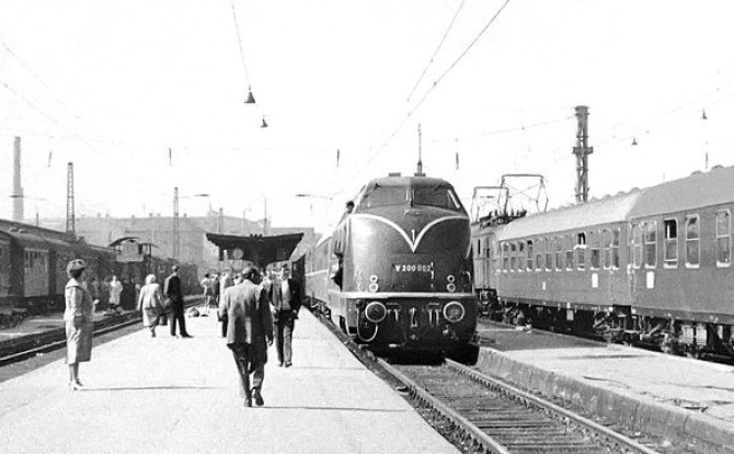 Bild oben: Die V 200 002 wird 1955 im Kölner Hauptbahnhof bewundert.